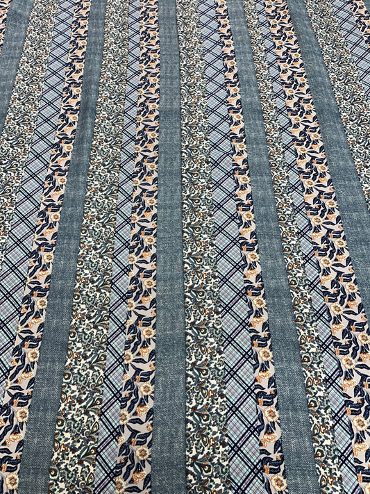 Wilde Rag 45x45 blue/gray plaid/floral stripe