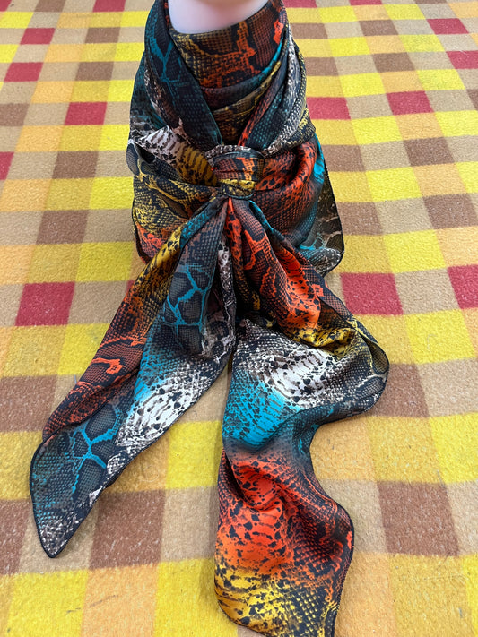 Wild Rag 45x45 teal/orange/yellow/white snake skin