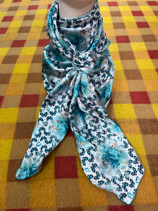 Wild Rag 45x45 turquoise roses/ butterfly’s