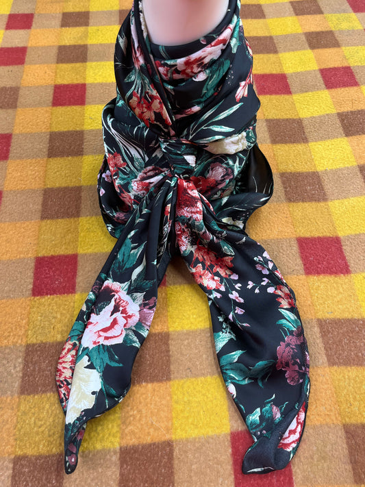Wild Rag 45x45 black/green floral/red/white roses