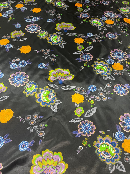 Wild Rag 45x45 black/blue/yellow Damascus floral