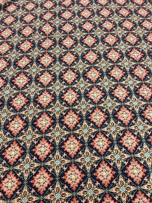 Wild Rag 45x45 coral/gold/white/chevron/ border floral