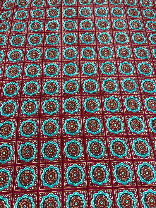 45x45 Wild Rag blue/red/black/tan tribal Damascus