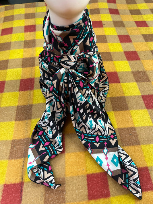 Wild Rag 45x45 turquoise/ black/ tan. Diamond/ tribal