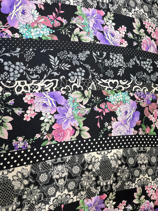 Wild Rag45x45 purple roses/ polka dot stripe