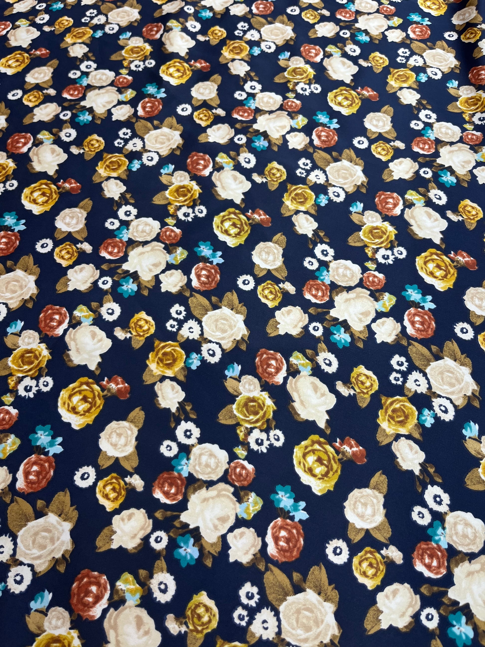 Wild Rag 45x45 navy/white/gold/rust roses